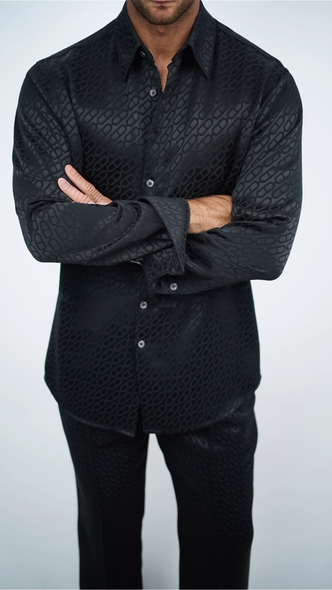 Suit style shiny ice silk short-sleeved shirt